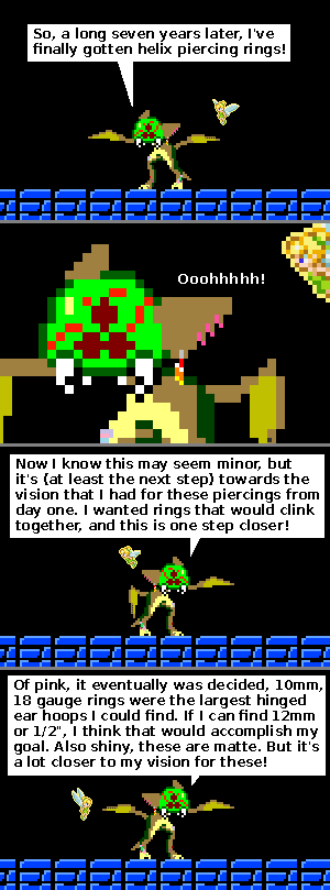 Now I know this may seem minor, but it's (at least the next step) towards the vision that I had for these piercings from day one. I wanted rings that would clink together, and this is one step closer!