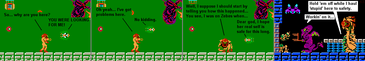 Well, I suppose I should start by telling you how this happened... You see, I was on Zebes when...