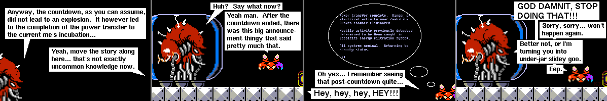 Anyway, the countdown, as you can assume, did not lead to an explosion. IT however led to the completion of the power transfer to the current me's incubation.