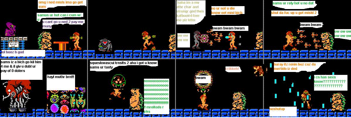 Rule 4: Don't mix different Metroid game generations unless it's actually part of the humour. If you mix them for no reason whatsoever... it just looks bad, I dunno man. Modify the sprite if you must, but just make it look good.