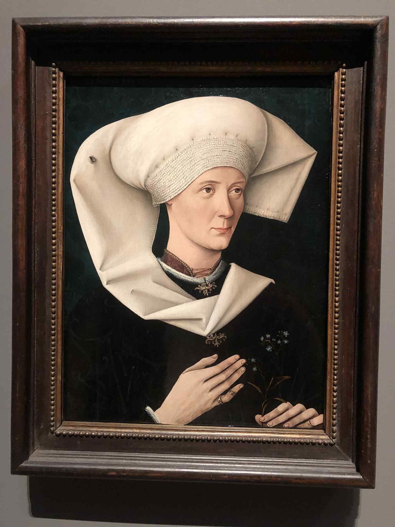 I have seen it! Portrait of a Woman of the Hofer Family, also casually known as the woman with a fly painting, also the painting that I saw myself akin to on page 1 of the fly chronicles! I have seen it in the person, absolutely by unexpected chance!!! Now, online it shows as in the collection ofthe National Gallery in London (!!!), but I hadn't researched that or anything. It was just a weekend day out with friends, we ended up wandering over towards Trafalger Square, and on a whim, ayy, let's check out the National Gallery that's right there! Wandering through, and what do I come across, staring at me from just a few feet away, completely out of the blue. The painting. Portrait of a Woman of the Hofer Family. Right there, in front of me. I was amazed, and HAD to take a photo of it. I should have taken a selfie with it, but... it's in this city, you may see another post about this yet! Next time I'm near Trafalger Square, most likely.